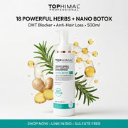Tophimal Organic Herbal Nano Botox Shampoo is a premium hair care solution enriched with natural ingredients, Nano Botox technology, and biotin. It gently cleanses while deeply repairing damaged hair, restoring smoothness, volume, and strength – without the use of harsh chemicals.